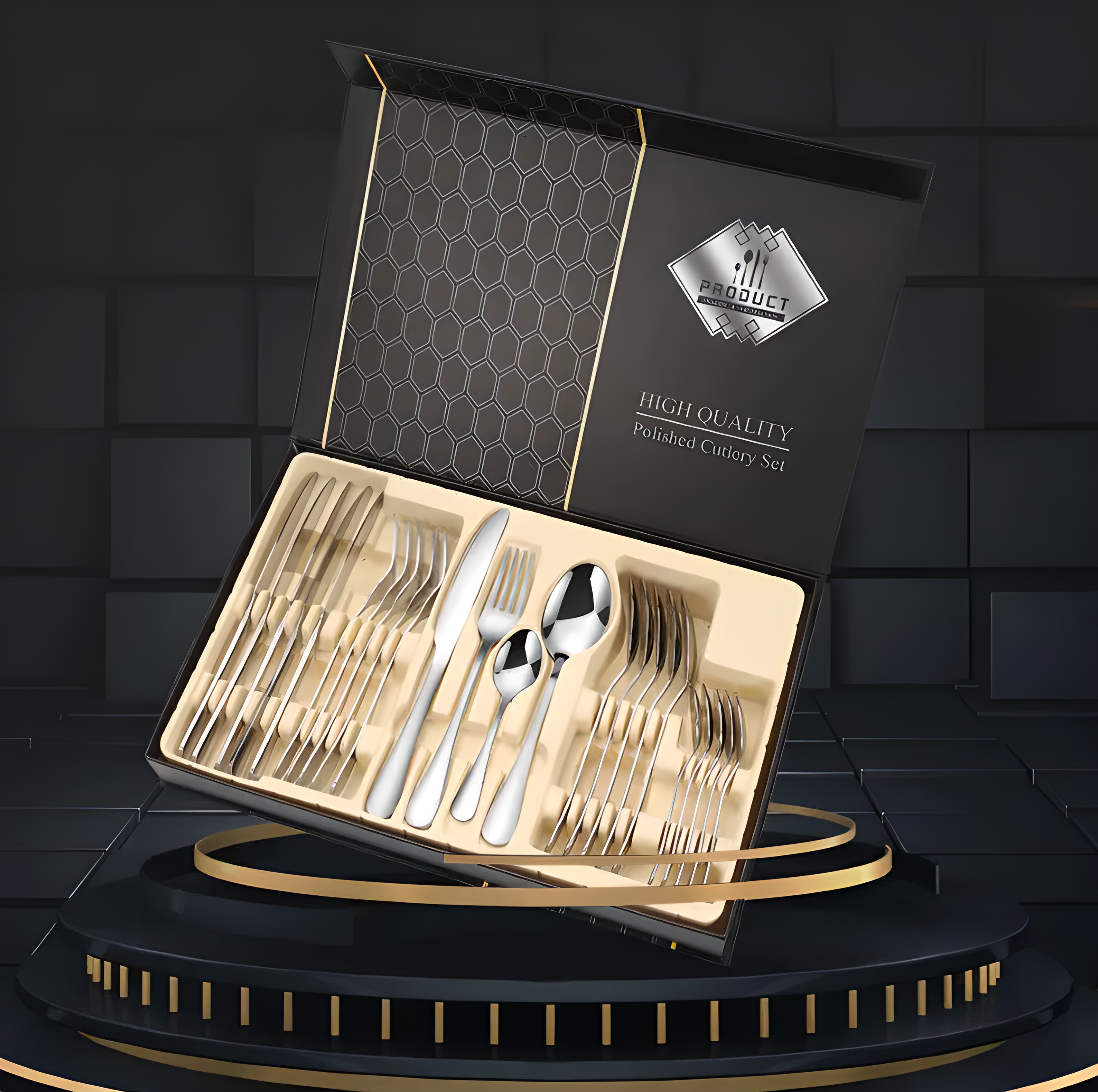 Our elegantly crafted 24-piece cutlery set is thoughtfully composed to cater to all your dining needs. It includes: